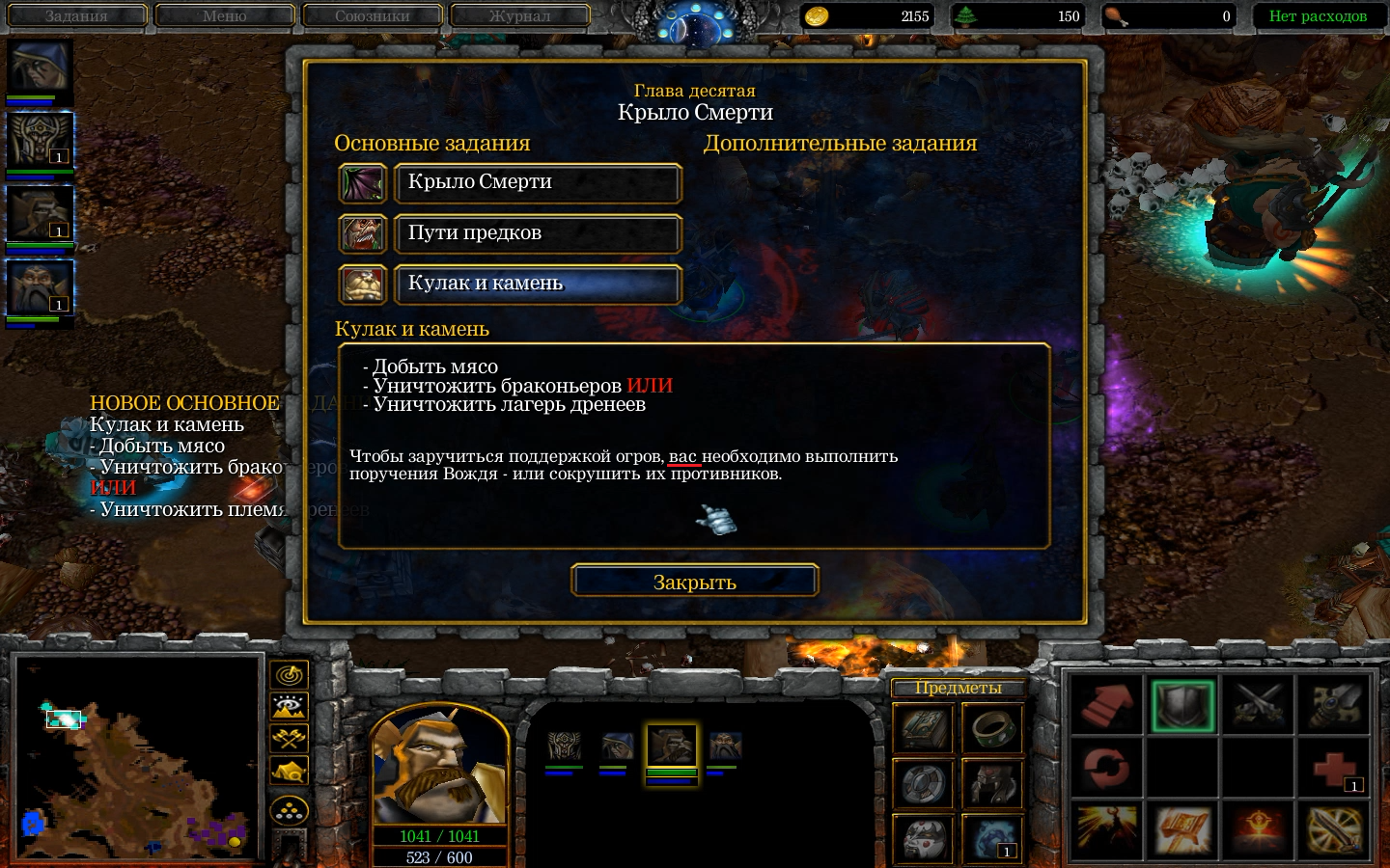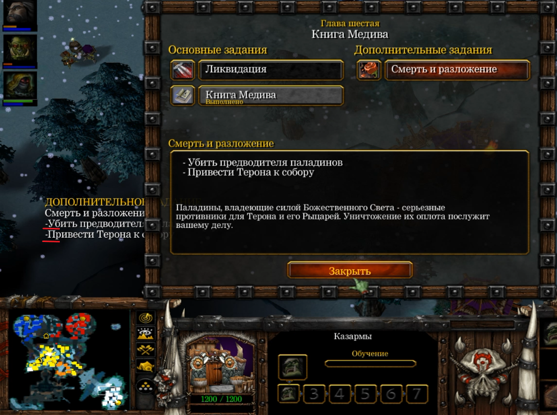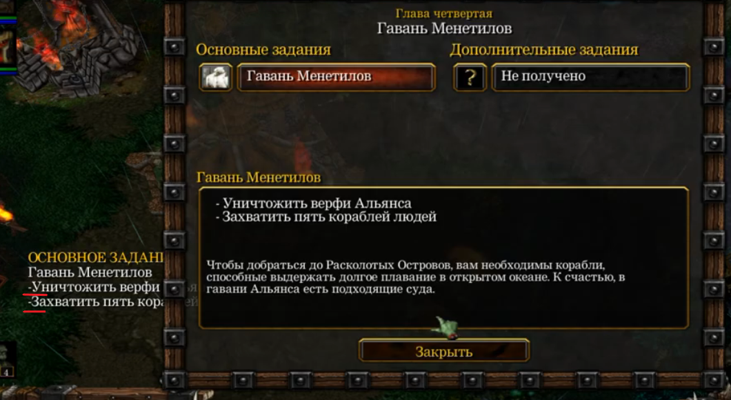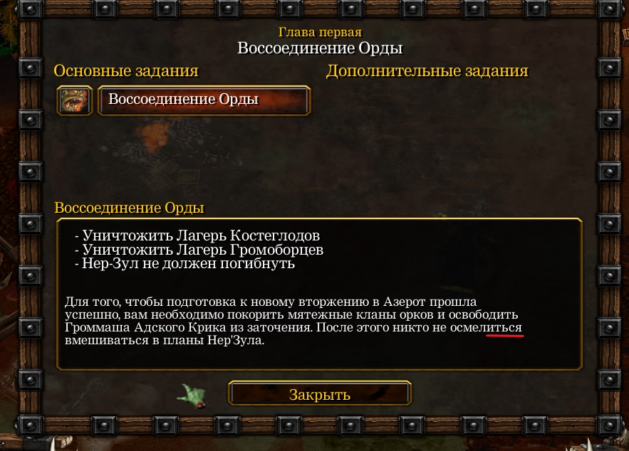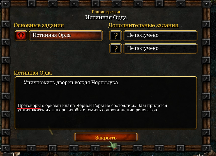 Присоединились новый герой и ещё несколько воинов. Отправляемся дальше в путь. Вскоре было получено единственное дополнительное задание главы. Оно заключалось в уничтожении двух лагерей Орды. Причём первый из них был разрушен сразу.