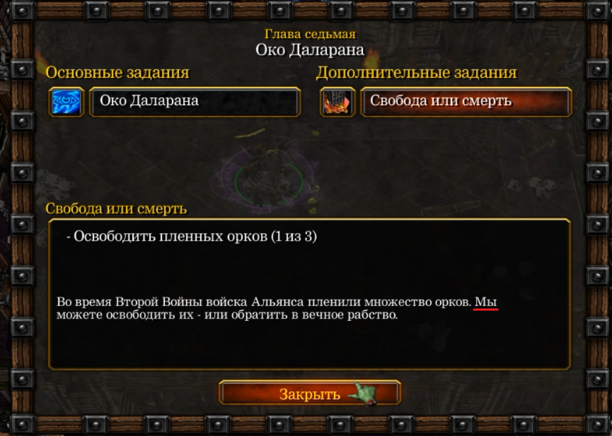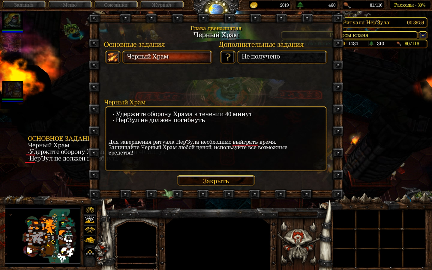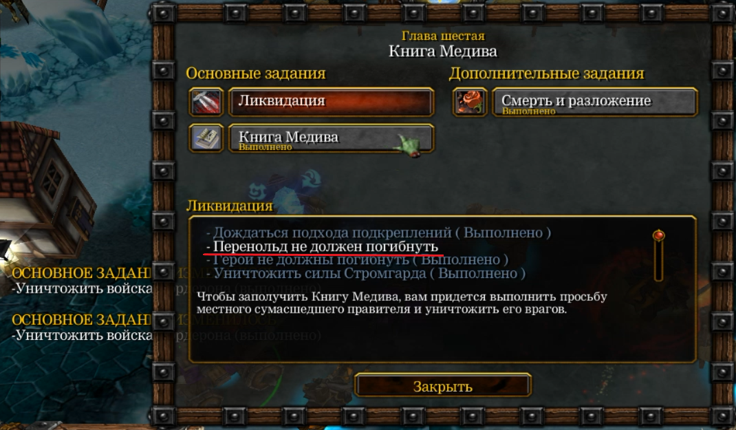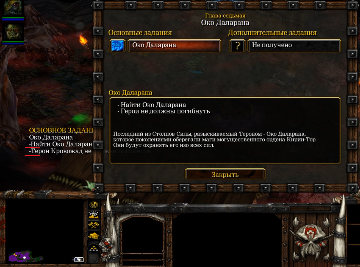 После небольшого перемещения по карте нашлась деревня людей, которую необходимо было защитить от нападения орков. Атака была отбита. Далее я уничтожил ещё один лагерь Орды и единственное дополнительное задание первой главы было выполнено.