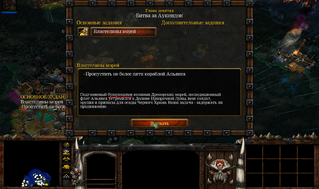 Сначала отправился на лодках вверх для разведки карты и сразился с враждебными нейтралами. После этого уже пошёл на выполнение главной задачи. Однако перед высадкой на берег, где была расположена верфь и корабли орков, предстояло совершить диверсию против очень мощного корабля джаггернаута. В противном случае все войска подверглись бы серьёзному обстрелу. Для этого я одной Аллерией, пробрался в тыл и взорвал бочку с порохом рядом с кораблём. Далее осталось только добить остатки орков на береге всей армией.