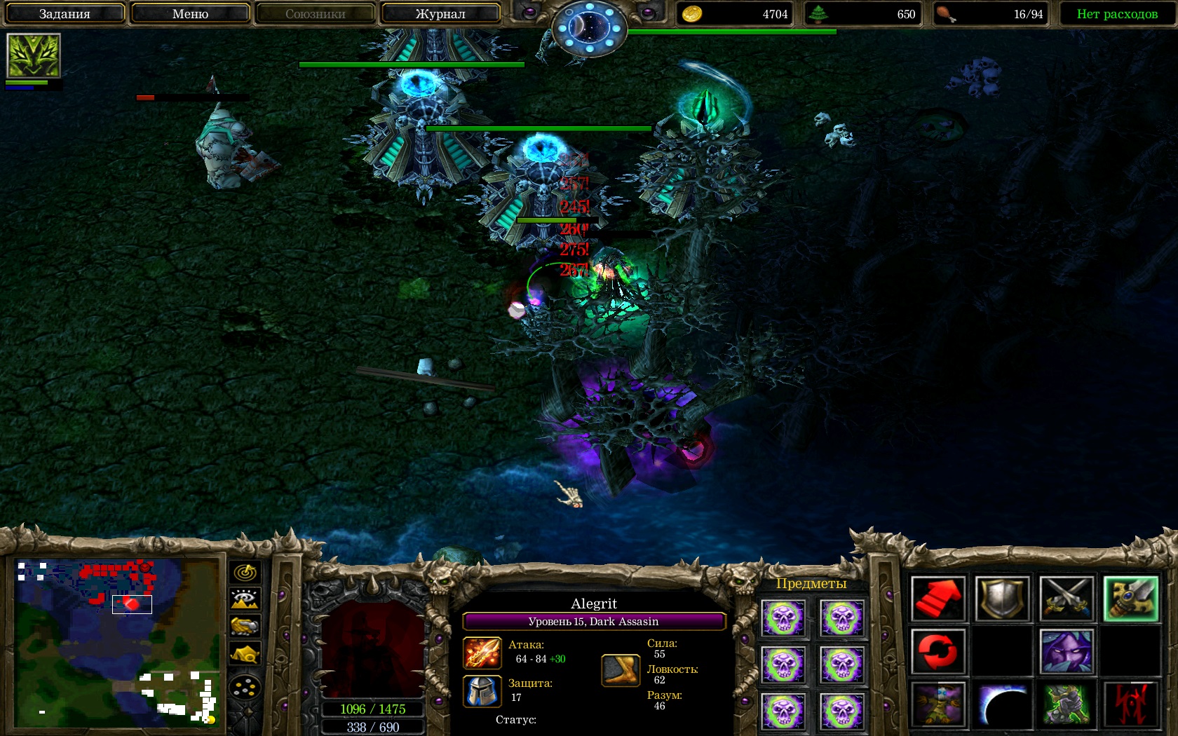 Тёмный Ассасин "Алегрит" пока много лет тренируясь по искусствам убийства, увидел как тёмный маг использует тёмную магию против толпы противников, те которые сразу погибли. Воодушевляясь силой такой магий , Алегрит начал изучать этот вид магий и после стал комбинировать тёмную магию с своими способностями, которые были чертовски эффективными. Будучи уверенным в своих силах, Тёмный Ассасин ушёл к Королю Мёртвых, решив помогать Нежити. И там впервые пользовался со своими способностями против реальных врагов.