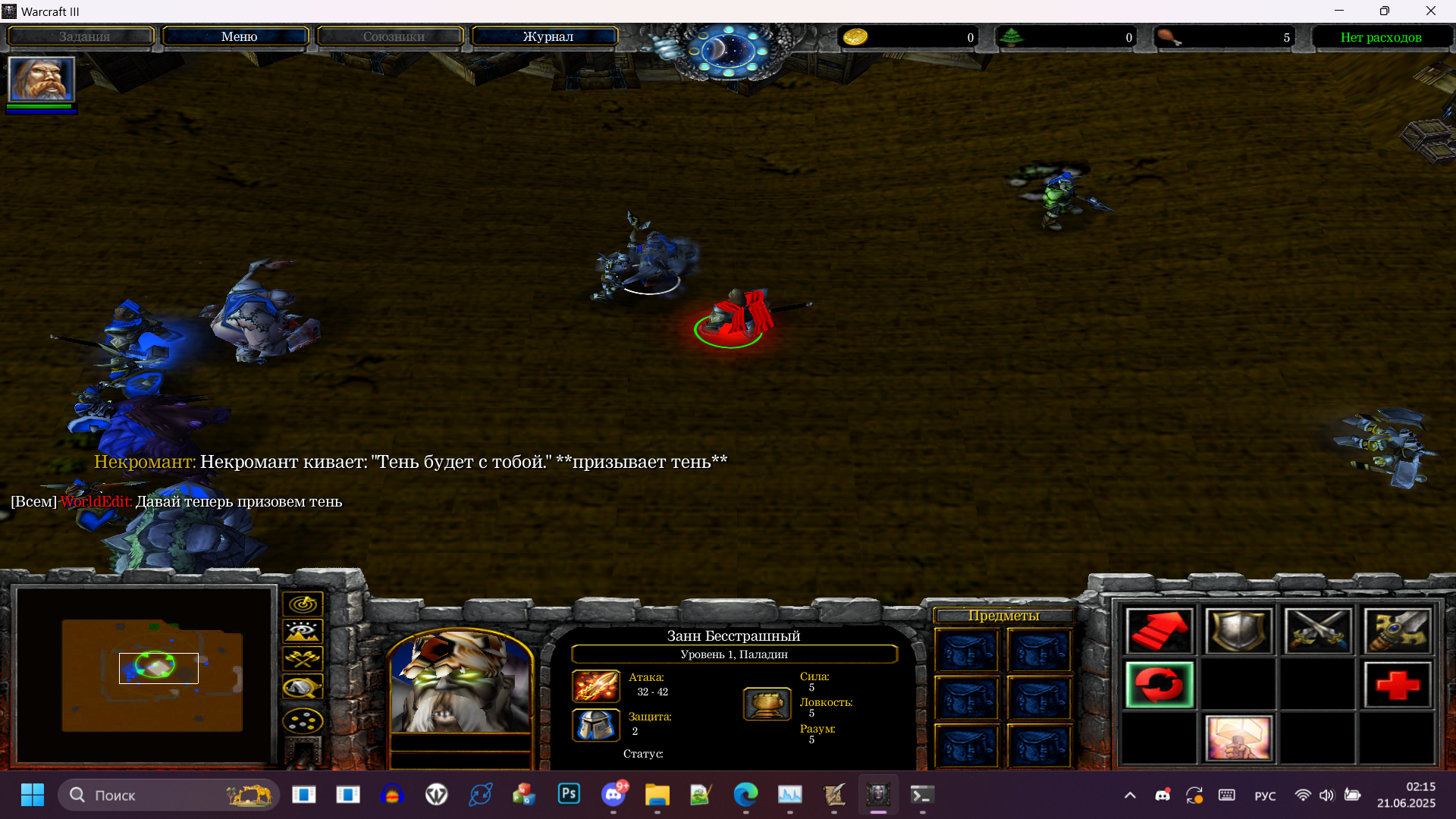 - Некромант будет говорить ТОЛЬКО наедине с Паладином, других юнитов быть не должно.
