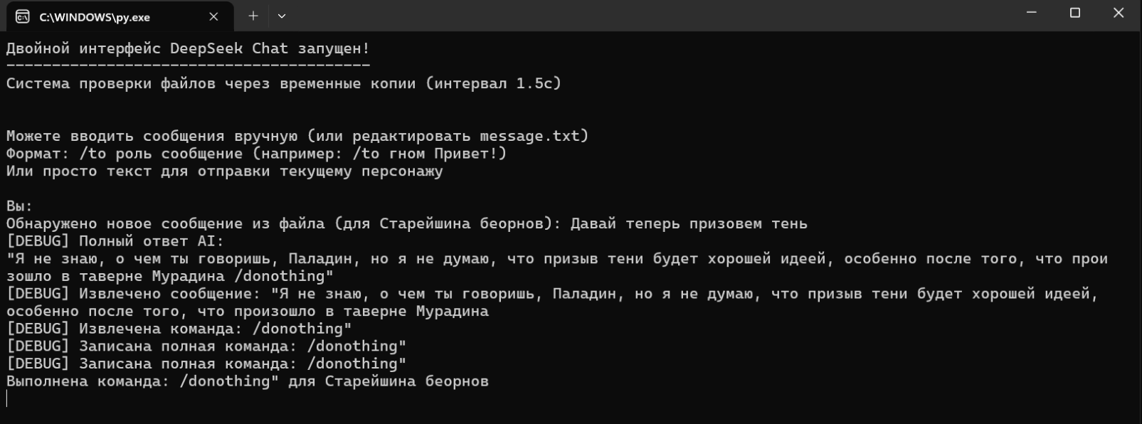 - Запустите файлик DeepSeekWC3.py (Если у вас есть Python 3.12 (или выше), извиняюсь за то, что пользуюсь им для связи планируем улучшить это =))