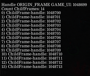 По умолчанию: у gameUI 14 потомков. Это если не учитывать Multiboard, Leaderboard, TimerDialog, без нажатия диалогового окна квеста (quest dialog clicked). Это зависит, скорее всего от того, включены ли эти данные в игре изначально.