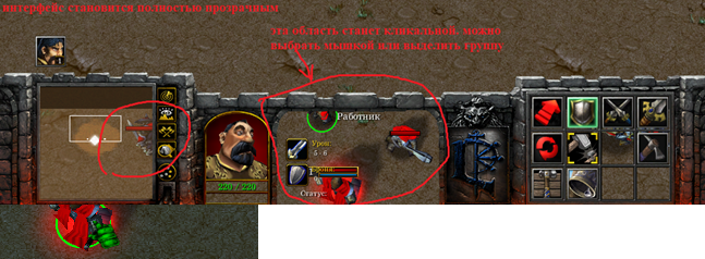 Черный фон нижней части интерфейса. Если отключить этот фрейм, то интерфейс станет прозрачным. А область в BottomCenterUI станет кликабельной, и там возможно выделить и выбрать юнитов.