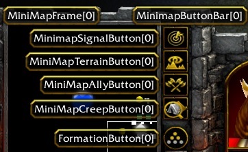 Ниже названия фреймов мини-карты не указаны в содержимом всех fdf, нашел их на хайве. Но их можно было найти в ui/framedef/ui/minimapframe/fdf.