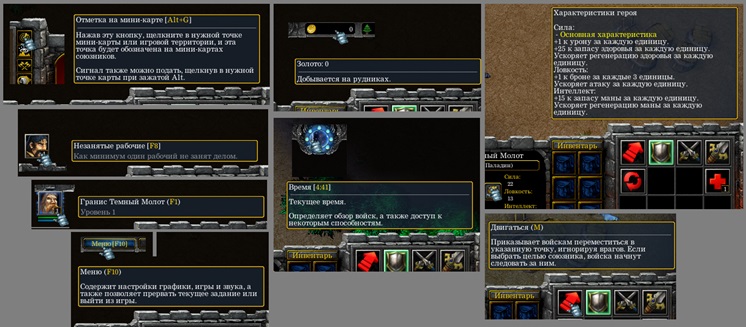 Эти фреймы отвечают за всплывающие окна с подсказками, появляющиеся при наведении мыши на элементы интерфейса: иконки героя, раба, кнопки абилки/юнита/технологии, кнопки меню/мини-карты, информация по интерфейсу.