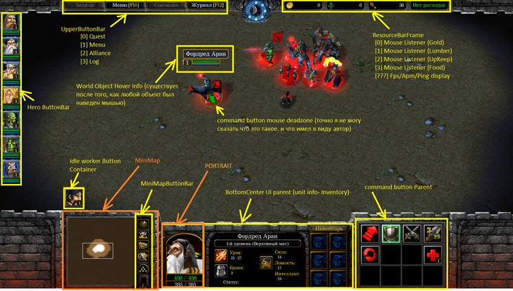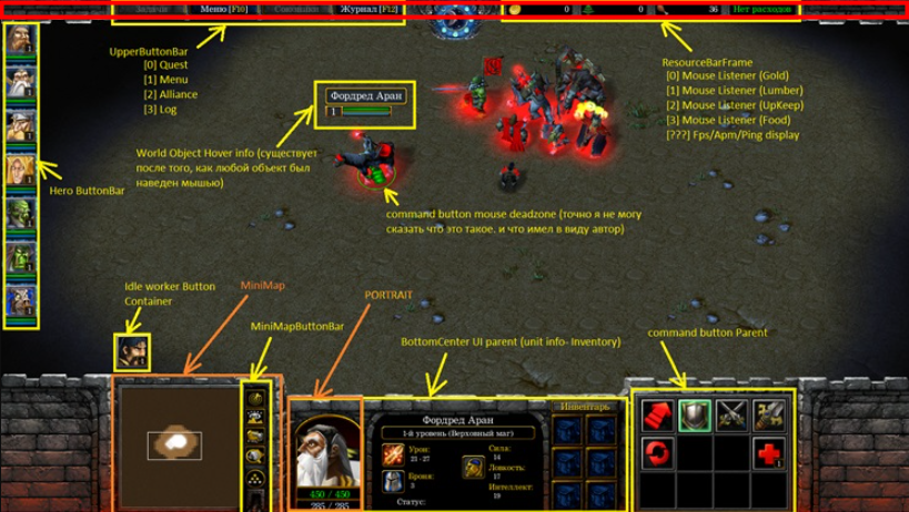На положение и размер этого фрейма влияет ConsoleUI, т.е. ConsoleUI является родителем интерфейса, в том числе нашего “невидимого фрейма”. поэтому до Warcraft 3 V1.32.6 предлагалось сделать что-то с «ConsoleUI», т.е. переместить ConsoleUI за пределами экрана. Но это вам придется слишком много переделывать, тк вместе с ConsoleUI перемещаются Console Texture и многие другие вещи.