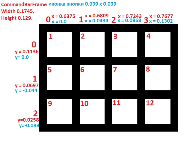 Невидимый фрейм В позиции командной панели, где находятся 12 кнопок CommandButton сверху наложен невидимый фрейм, который блокирует щелчок мышью в этом месте. Внимание: для тех кто в танке, объясняю, что по факту этот фрейм никак не влияет на работу существующих 12 кнопок панели. Но стоит их заменить самодельными кнопками, или поставить свой фрейм в эту область, у вас тут же перестают работать кнопки. Просто этот “невидимый” фрейм находится выше самодельных кнопок, никак не опустить его уровнем ниже, и блокирует нажатие и клики по самодельным фреймам. Короче, из-за него ничего не можем сделать. Некоторые новички могли бы не понять из-за чего происходила ошибка, когда перемещали свои кнопки в область.