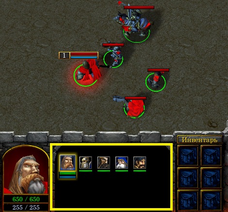 Плавающая панель инвентаря. Есть открытая панель инвентаря, когда у юнита есть способность инвентаря. И закрытая, когда у юнита она не доступна. Также когда вы выделяется декорации, итемы.