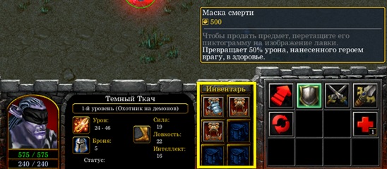 фрейм-родитель от слотов инвентаря. Отвечает за показ иконок итемов, лежащих в инвентаре. Обычно при переключении на юнита без инвентаря или на декорацию, то инвентарь закрывается / итемы прячут.