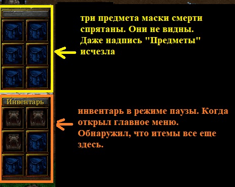 Скрытые итемы и надпись “Инвентарь” в режиме паузы становятся вновь видимы. Но как-только закрываю главное меню, их не видно.