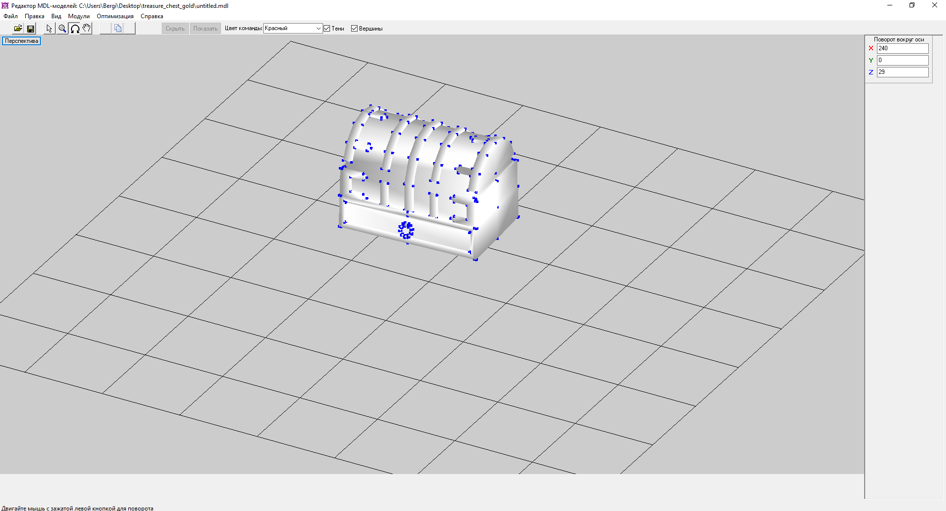 Вроде даже получилось, жаль что есть проблема с анимацией, в таком простом режиме нельзя конвертануть больше чем 3333 кадра, полный круг поворота сундучка 5к кадров, я доделал сам, ну вроде глаз сильно не режет