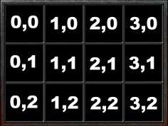 - Через строку находится строка Buttonpos=X,Y, где X и Y - координаты кнопки. Вот эту строку, вернее X и Y, и надо менять, координаты ячеек показаны ниже на рисунке.