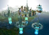 Теперь на земле размещаем обычные деревья с масштабом 25% и другие кусты/камни и т.д. Также я использовал декорацию с файлом модели "Книга забвения" для эффекта под замками. Добавляем регионы с погодными эффектами, туман и вот! Вроде получилось... Правда ходить по такому городу будет нельзя, нужно будет создавать либо невидимые платформы или делать триггерную систему. Просто я решил привести этот пример как наглядный способ сделать что то особо необычное.