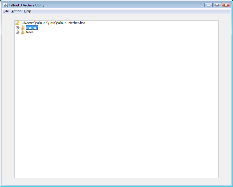 нажимаем Action -> Extract All (Извлечь всё) или Extract Selected Files (Извлечь выделенные файлы) и выбираем путь извлечения файлов. После извлечения в папке куда вы указали извлекать файлы появятся папки - meshes и trees. В папке meshes хранятся все 3d модели.