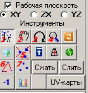 Сначала простыми действиями, выделением вершин (кнопка 1) и передвижением их в «перспективе» вид справа (кнопка 2) добиваемся следующего вида ( рис 2)