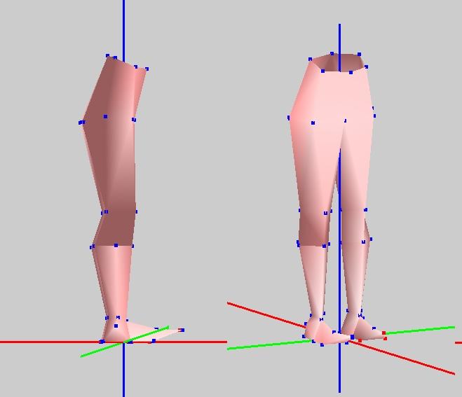 уже похожи на человечьи ноги, но никак не женские, продолжаем правку в этой перспективе. Я, если нет каких то дополнительных условий, стараюсь располагать точки в одной плоскости ( сгиба) это удобно при работе с анимками и «натягивании» текстур, так и делаю с этой моделькой.