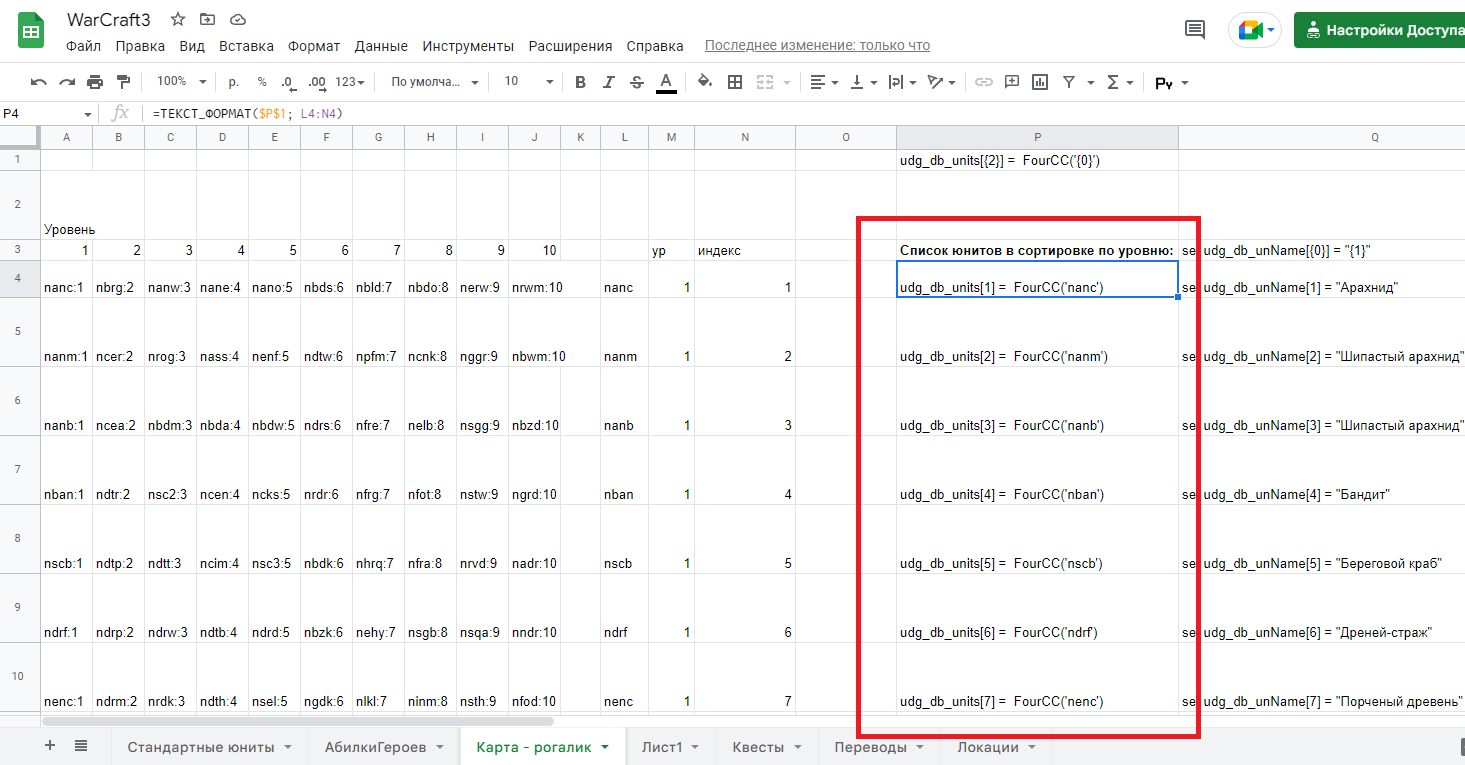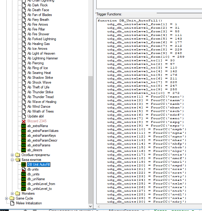 Так, например, без труда можно проинициализировать нужные переменные, записав в них информацию о юнитах, как это сделано, например, ниже. Здесь все юниты записаны в массив с предварительной сортировкой по уровню:
