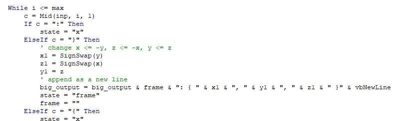 Поэтому я написал штуку которая меняет местами координаты внтури { x, y, z } блоков. И еще там знак меняет в двух местах.