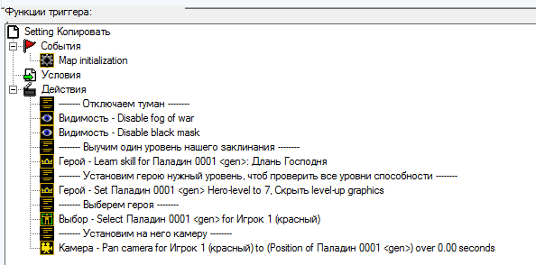 Итак, наконец-то жмём F4 в редакторе и открываем редактор триггеров. Удаляем все триггеры, создаём папку Main и в ней содаём первый триггер Setting.