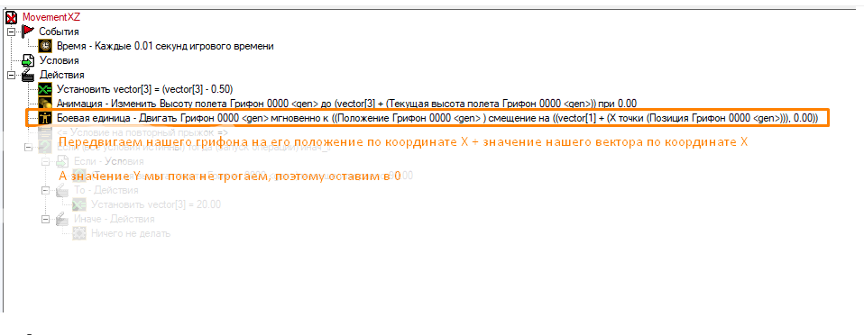 Получаемый вектор таким способом является единичным, то есть его длина равна 1-му, и следует, что дистанция между срабатываниями триггерами будет равна именно 1, а в варкрафте это 1 / 128 белой клетки, не дело совсем! Поэтому мы и помножим на скорость.