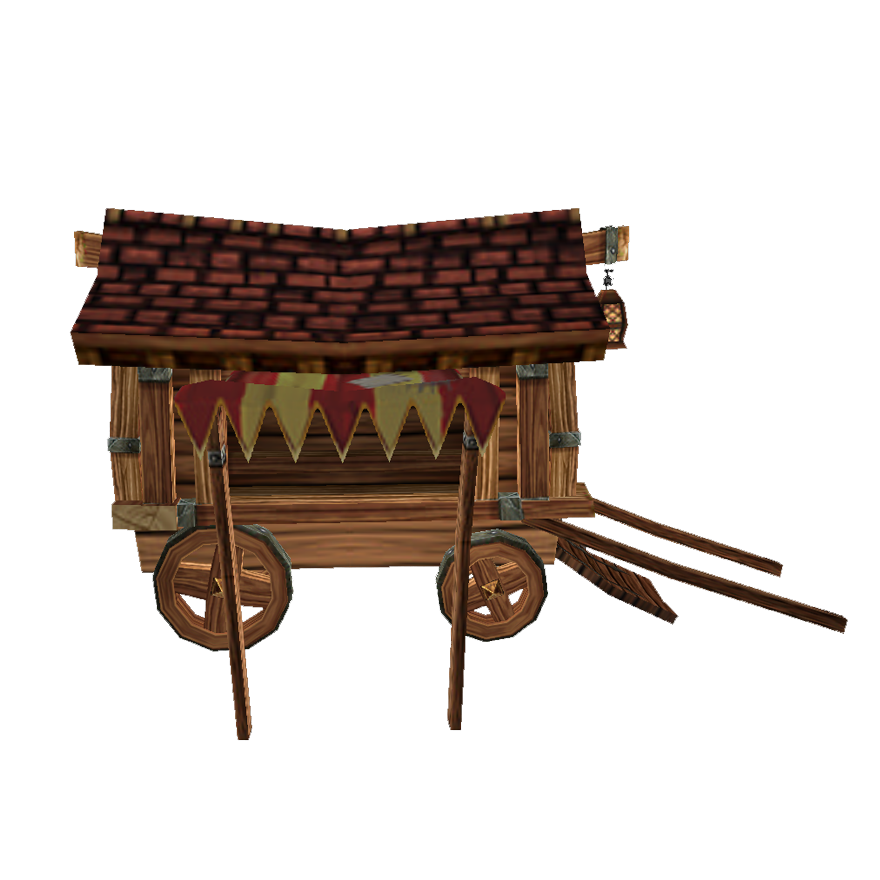 Повозка торговца, которую можно заметить во многих поселениях Альянса. Фонарь покачивается и светится, его можно погасить через анимацию Death. Для свечения используется импортируемая текстура - если удалить этот материал из модели, она будут полностью на стандарте (но без света в фонаре, очевидно).