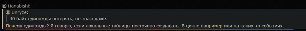 Я отвечал на это, "Я говорю, если локальные таблицы постоянно создавать" и "В цикле например или на каких-то событиях." В сообщении же вроде видны цитаты. :(