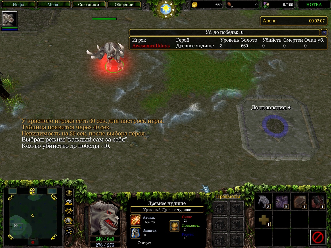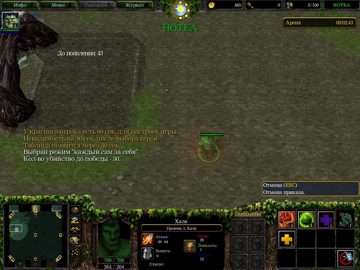 После выбора героя дается невидимость на 40 сек, после появляется таблица (мультиборд).