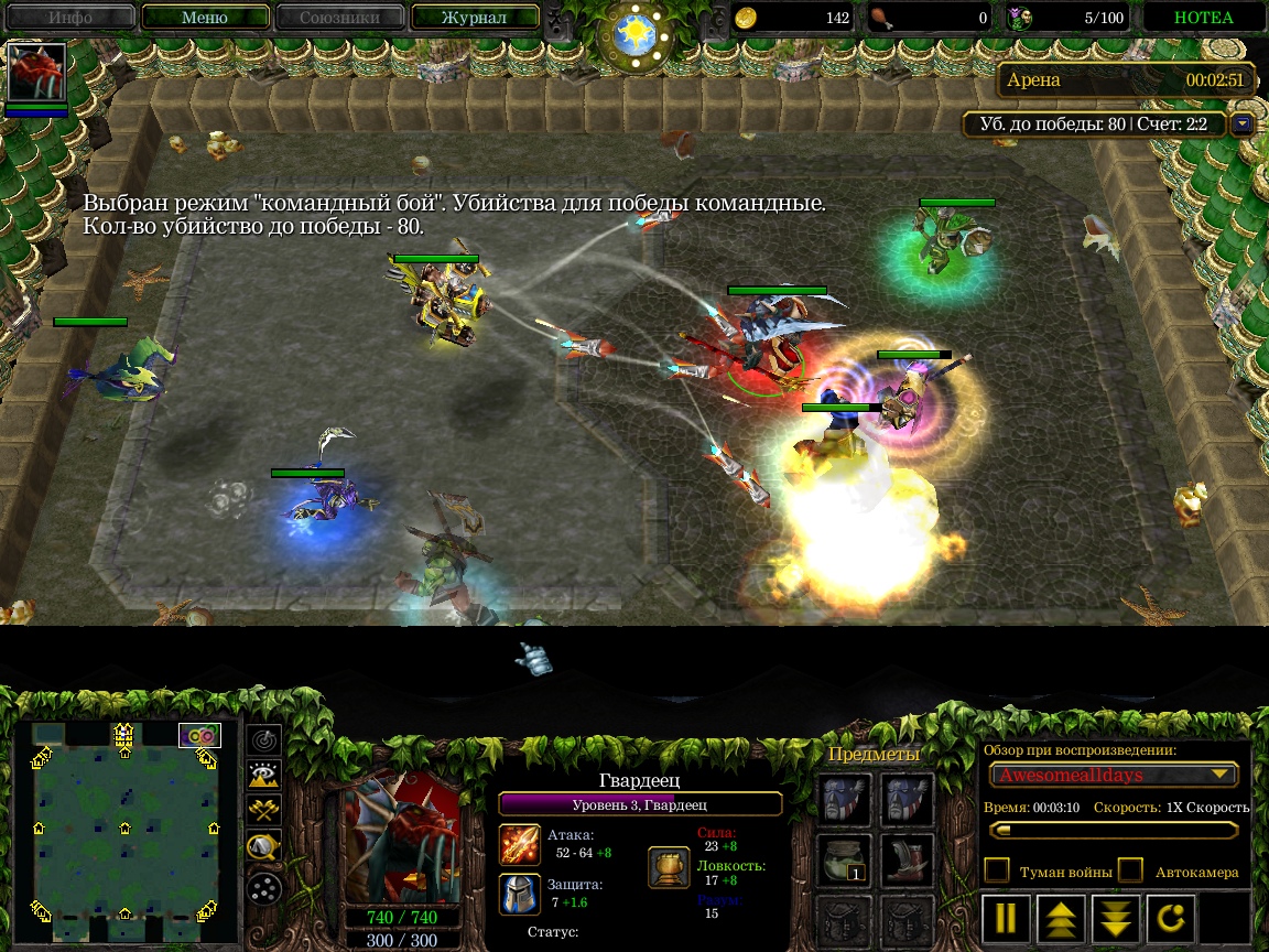Каждые 3 минуты герои попадают на арену в верху карты.