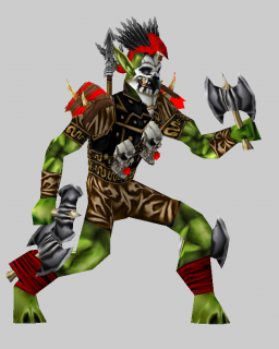 Герой лесных троллей, сражающийся в бою двумя метательными топорами.