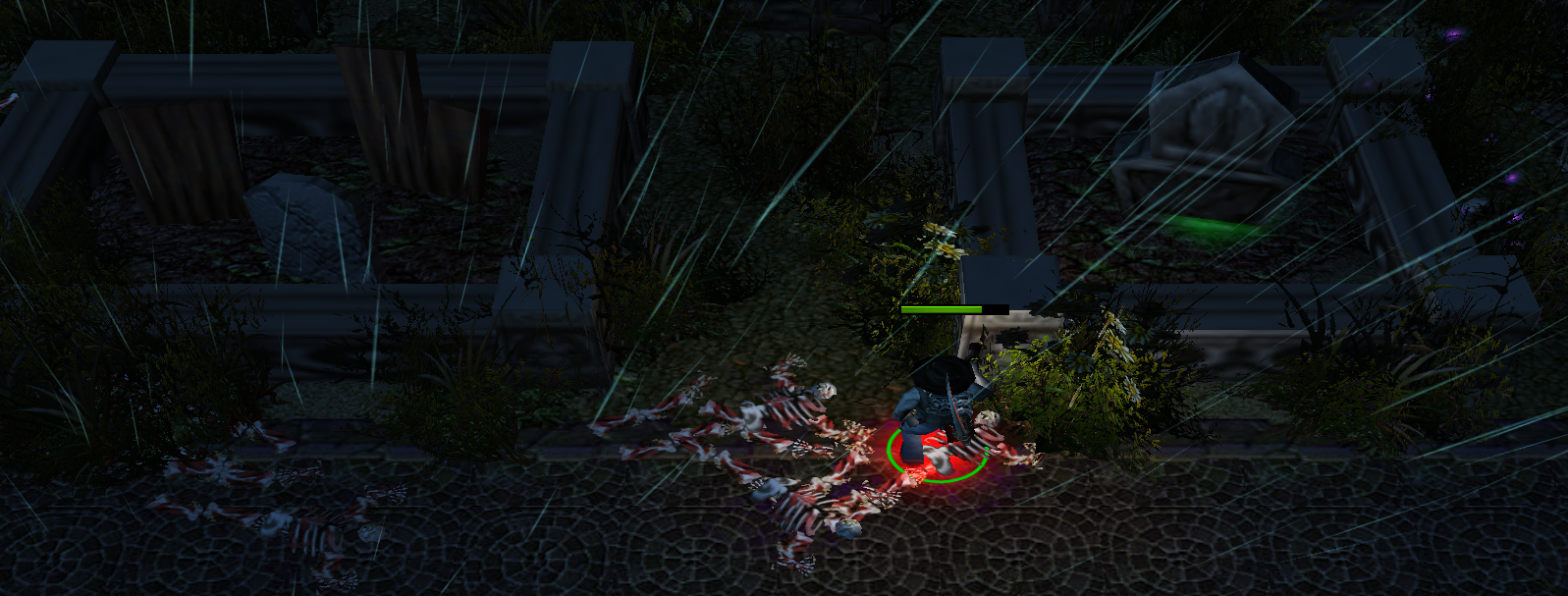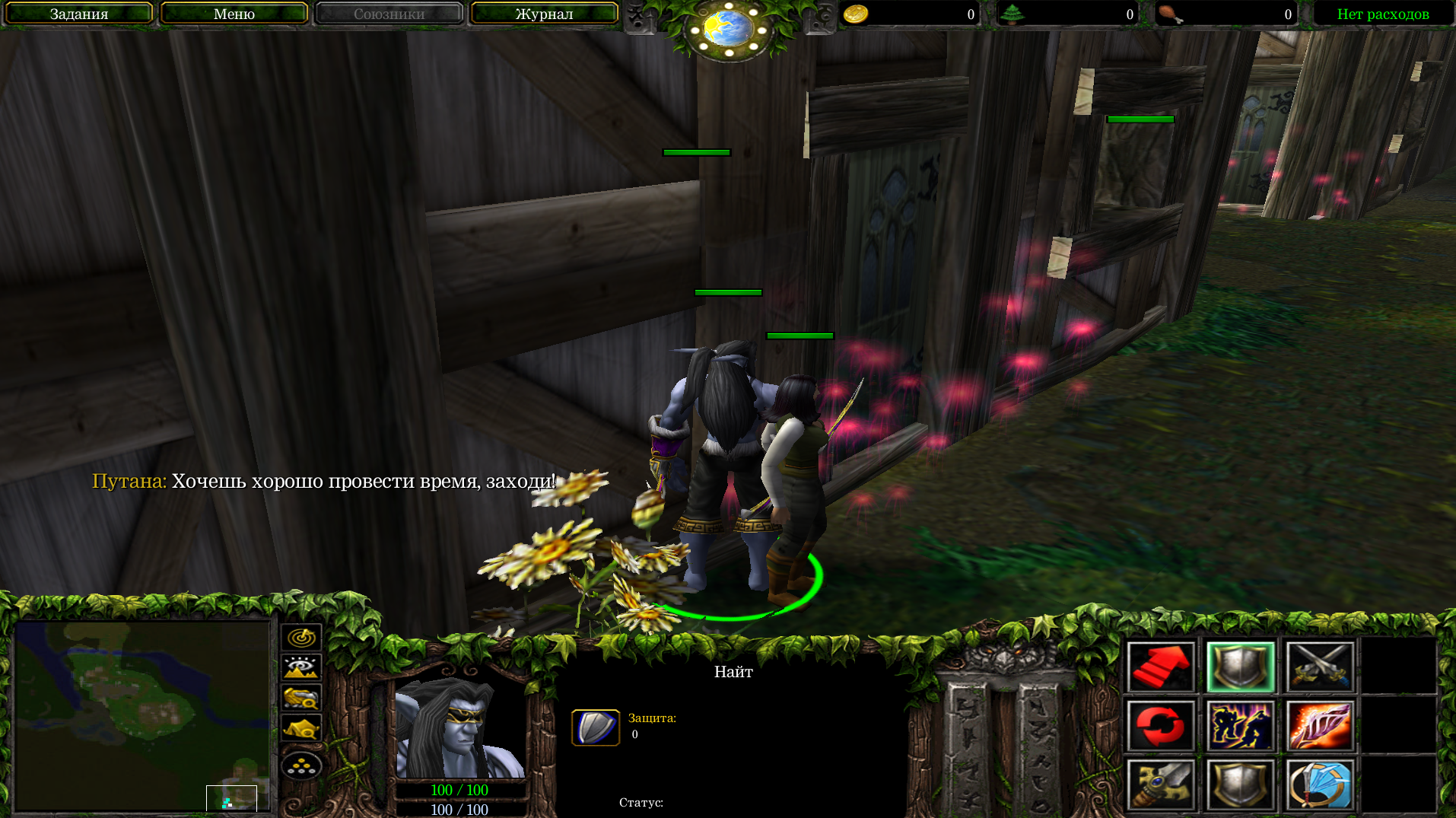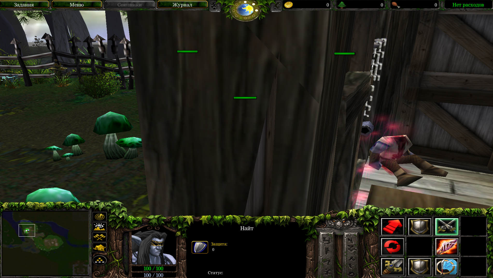 Последним для меня заданием было расчистить путь для отряда дружественных NPC. Сами NPC в этом время стоят в кучке в сторонке, пока ты выискиваешь по лесу редких вурдалаков. Но среди этих NPC есть паладин, к которому можно подойти для восстановления здоровья. Убив вроде как всех в окрестности (их довольно сложно найти, так как радиус обзора не очень большой), я попытался зайти в строение, где отмечались остальные враги. Но как только заходил в проход, мой персонаж мгновенно умирал от некого магического воздействия. Тут даже не помогала способность полной защиты от магии.