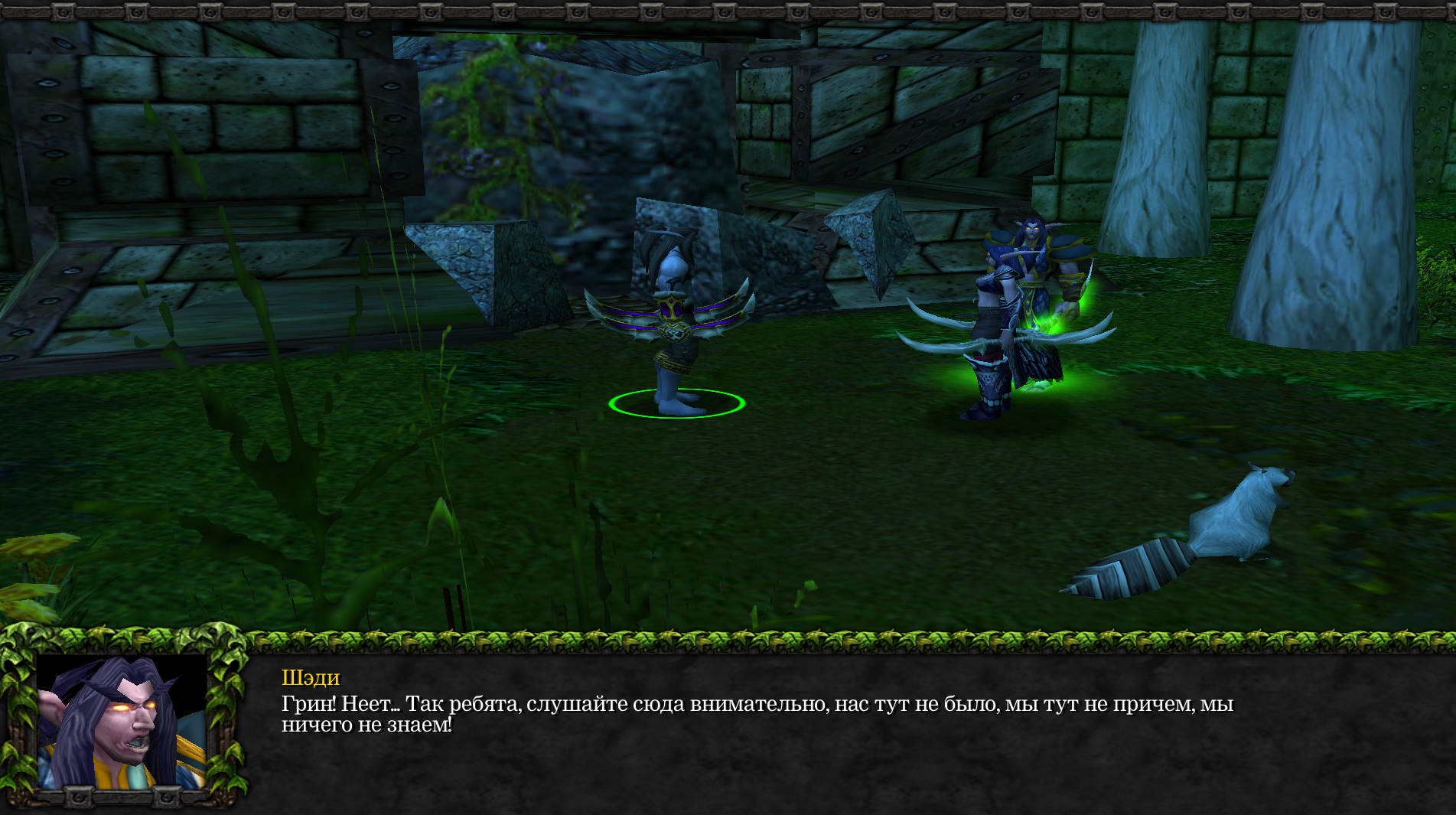 Преодолев все препятствия, а именно камеру, управление и систему видимости Warcraft, из-за которой исчезали текстуры пола, мы пришли к закономерному итогу. Руины окончательно обрушились, а один из группы потерялся. Теперь главное чтобы взрослые не узнали.