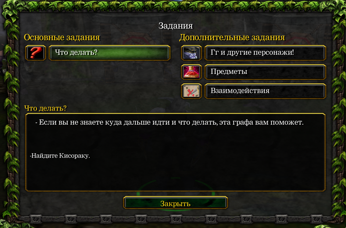 Больше ничего интересного я тут не обнаружил. Но вернувшись назад и погибнув от рук очередных мобов, у меня начался следующий диалог: