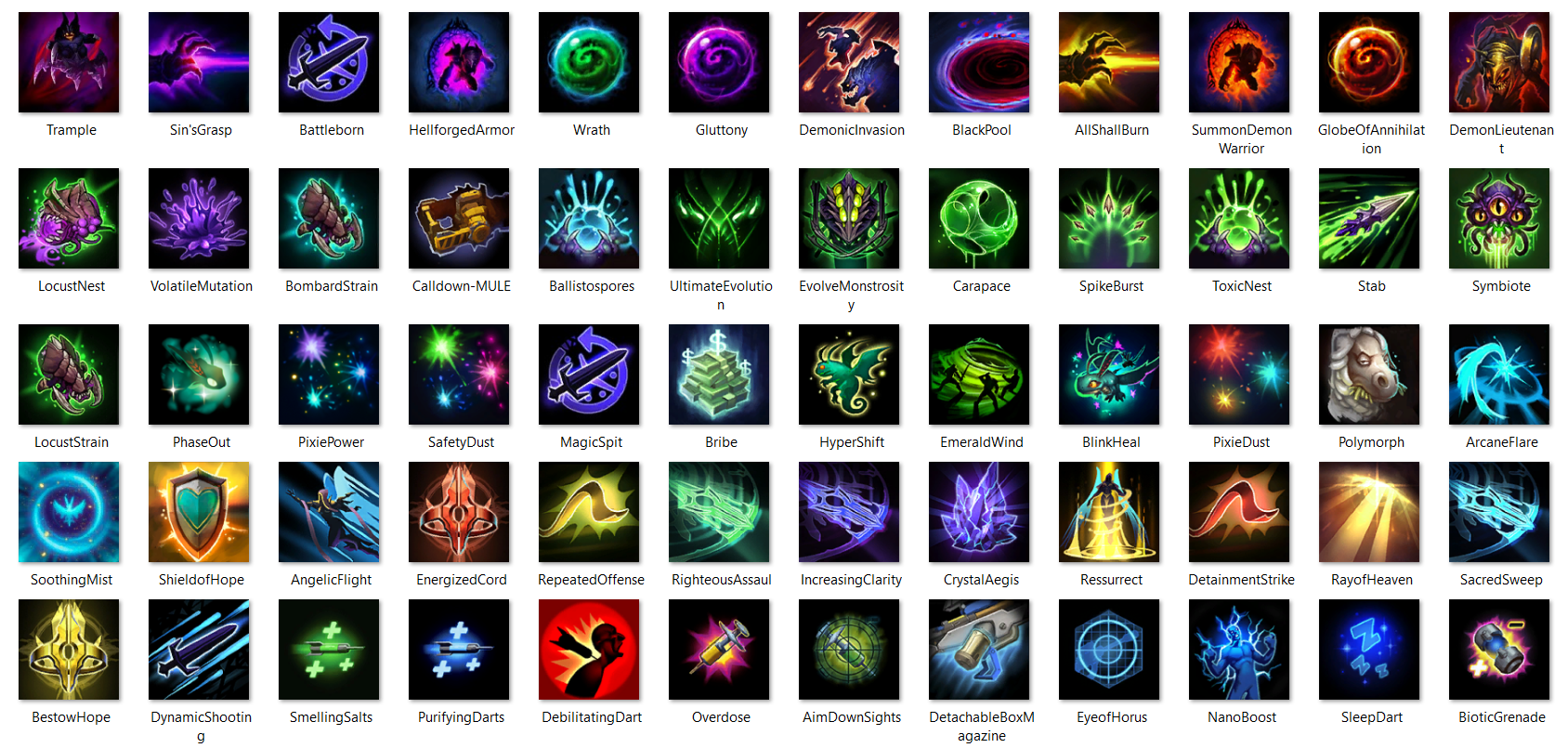 Удачного тестирования! Всего 86 паков иконок для каждого героя. Есть формат .png и .blp, также есть DISBTN.