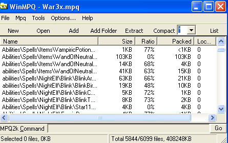 - позволяет открыть находящийся в архиве файл с помощью любой программы, если файл ещё не ассоциирован ни с одной. Тоже самое будет, если просто два раза щёлкнуть левой кнопкой мыши по файлу. К чести создателей WinMPQ стоит сказать, что интерфейс интуитивен и построен по тому же типу, что и все Windows приложения.