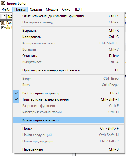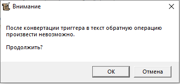 На самом деле, данную операцию можно отменить, но одной с оговоркой. Как и любую операцию, преобразование триггера в текст можно отменить комбинацией клавиш Ctrl+z. Таким образом, можно преобразовать триггер в код, посмотреть на него и даже что-то скопировать (но не менять), а затем вернуть всё обратно.