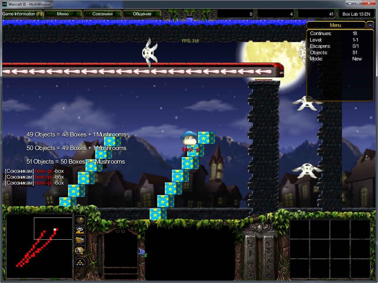 а если сделать две лесенки: -ladder2 20 + 30 раз -box - итого 50 коробок двумя лесенками - то будет 30 фпс