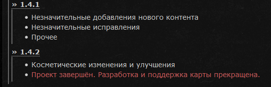 - Проект завершён. Разработка и поддержка карты прекращена.