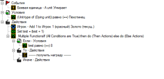 sssuplex, Крч смотри.Сначала замени событие на отряд-умирает(Или как-то так,тоже во вкладке боевая единица),в условии проверяешь какой именно юнит умер(В твое случае это похоже волк))),в действии делаешь созданная тобой целочисленная+1