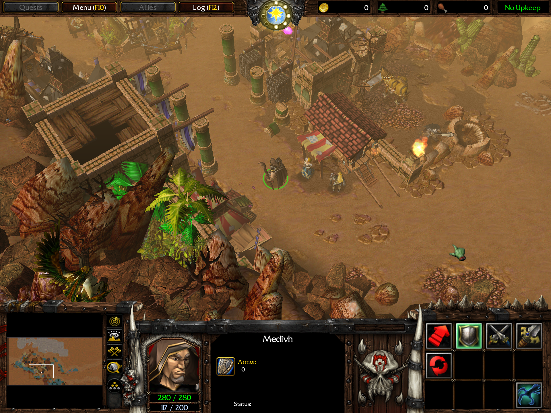 Стиль здесь достаточно филигранный для дедушки варкрафта, за исключением отдельных решений. Лично на мой взгляд флаги и колоны откровенно вырвали концепцию и немного смутили взор. У автора замечательный стиль в архитектуре, но здесь был миссклик по выбору текстуры флагов и миссклик по расстановке колон.