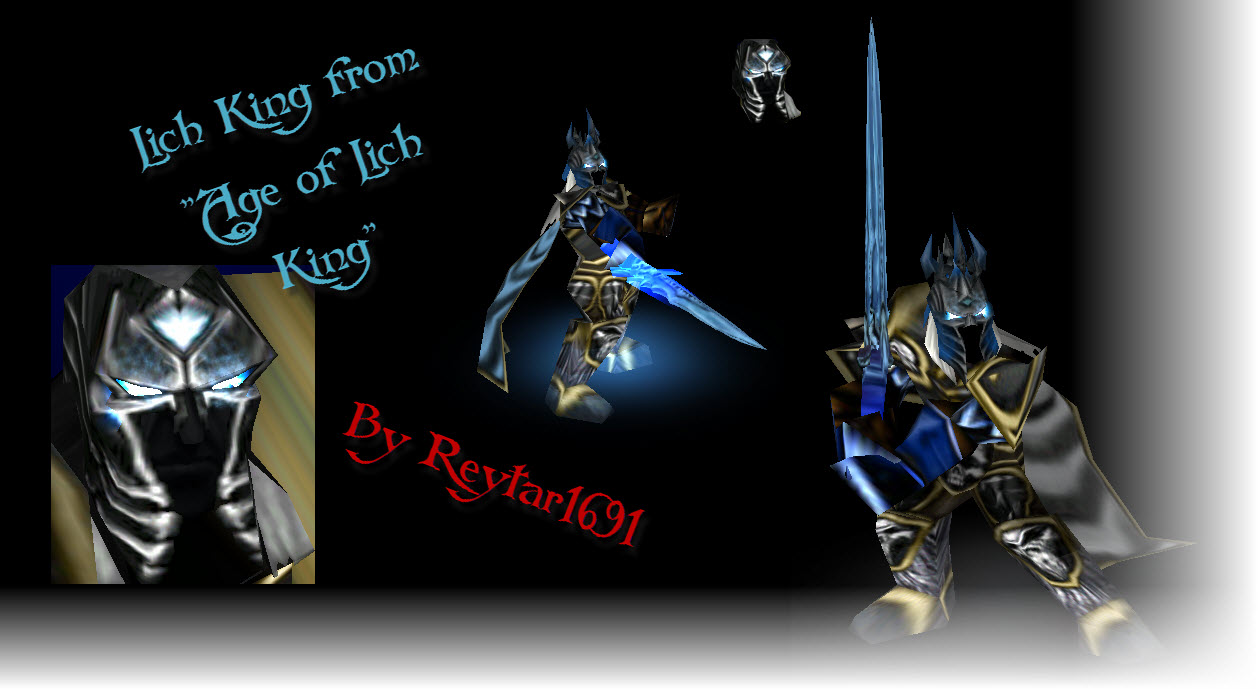 Моя первая модель - Король Мертвых. Создавать было не особо трудно, но что-то меч его "иногда" не сияет, а замерзает как и сам "Ледяной Трон". Броня у него новая, поэтому выглядит золотой, ведь только шлем и меч были выкованы изо льда
