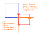 В нашем случае, примитивами двух отрезков являются прямые. То есть, нам необходимо найти точку пересечения прямых, на которых лежат наши отрезки, а затем проверить, лежит ли найденная точка в пределах отрезков.