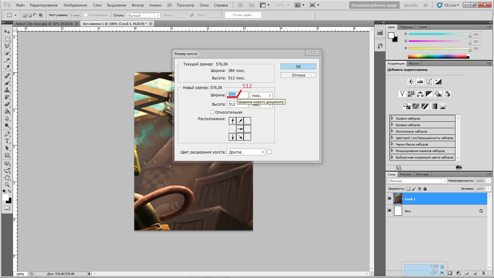 1. 3 и 7 выкраиваем в ширину 384 и в высоту 512, раздвигаем холст на 512 в высоту и 512 в ширину, так что бы нужный фрагмент остался слева: