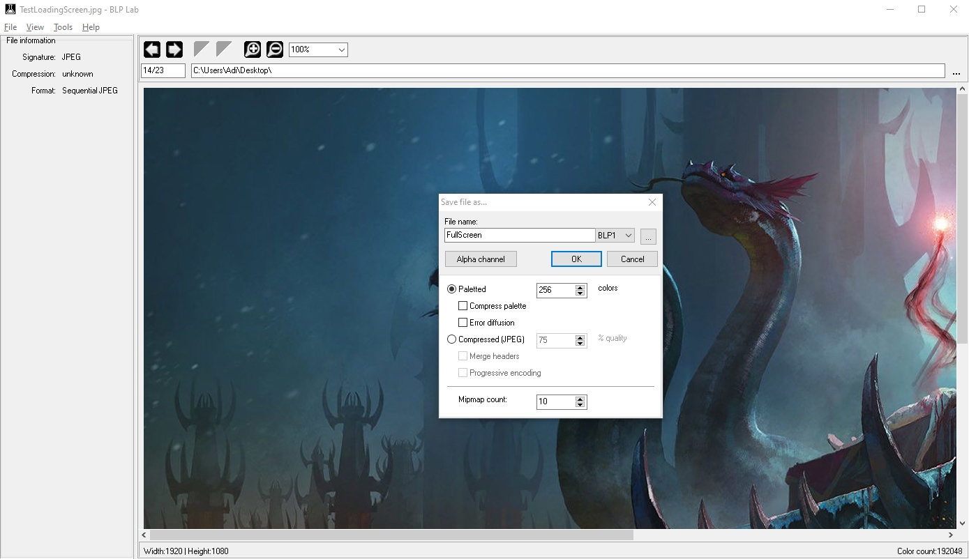 Сохраняем картинку в формате Blp с названием FullScreen.blp