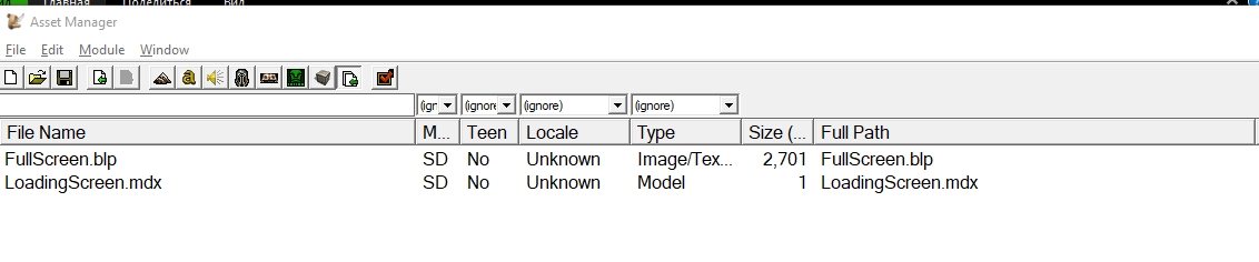 Импортируем в карту наш загрузочный экран FullScreen.blp и наш файл модели LoadingScreen.mdx