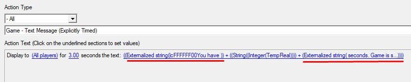 2. По поводу триггерного текста и кода. Обычно одна полная строка попадает в файл спокойно. А вот уже разделение по подстрокам в файл не записывается. Но если мы таки хотим записать этот текст по кускам - то можно использовать функцию Externalized string("текст"), которая насильно запишет кусок вашего текста в файл. Эта функция есть даже в 1.26а варике.
