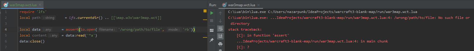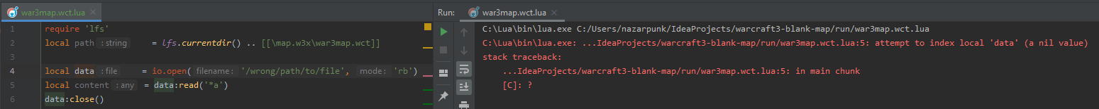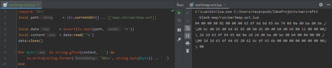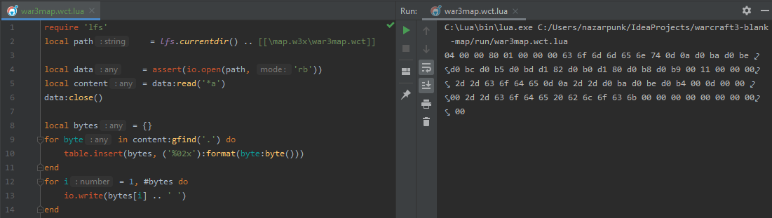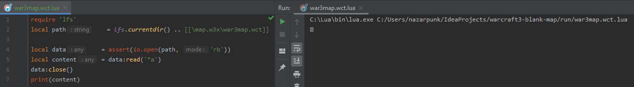 Не мудрствуя лукаво, заглянем в документацию и возьмём оттуда код чтения файла, подправим под наши нужды и сохраним в /run/war3map.wct.lua