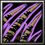 -На основе шипов(с фиолетовым свечением) - сделать первый вариант таким, мало крови в кончике(цвет красный 65% тёмный, 35% светлый) и рядом с этой кровью филетовое свечение(именно в местах крови) сделать красным(50% каждая сторона), а остальное фиолетовое свечение сделать оранжевым, а черные полоски - сделать под цвет самого шипа(желтоватый). Второй тоже самое, но побольше крови(до середины шипа). А третий почти полностью кровавый. У всех этих троих иконок сделать оранжевый фон.