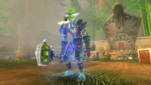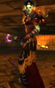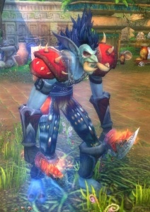 - Зеленокожий орк, в меховой шапке, сапогах и перчатках. На теле кожаная куртка. В броне предпочтительны серые, черные и серебряные цвета. В левой руке односторонний топор. За поясом небольшой кинжал.