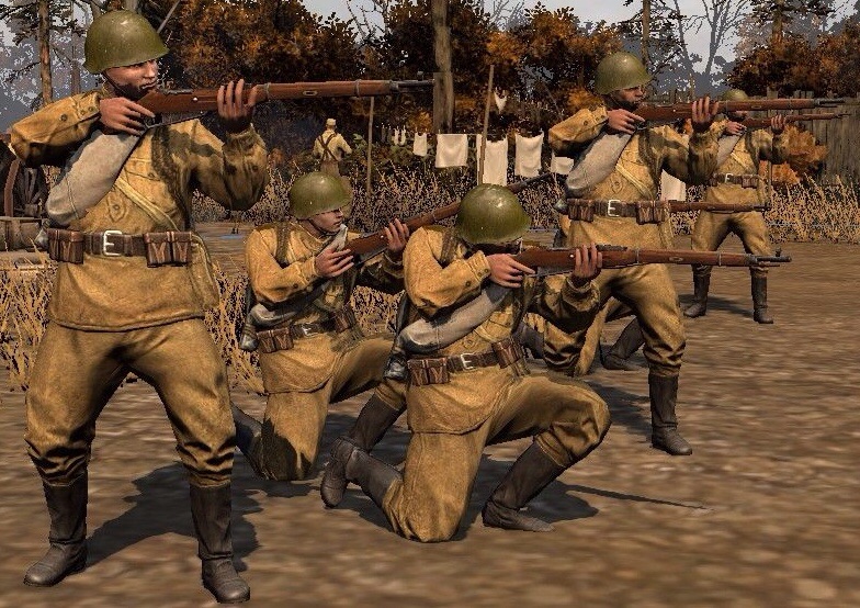 Простой солдат - голова серого крестьянина,в руках тоже винтовка,униформа темно-зеленого цвета